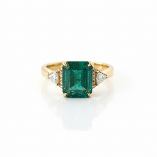 Emerald and Trillion Double Ring